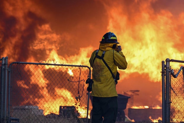 Elsewhere, fire crews were making progress on another complex of fires burning in the Plumas National Forest near the California-Nevada line, said Forest Service spokesperson Adrienne Freeman. Traffic was backed up for miles near the border on a portion of the main highway linking Los Angeles and Las Vegas, as crews continued Saturday to battle a fire that started a day before when a truck carrying lithium-ion batteries crashed and turned onto its side.
